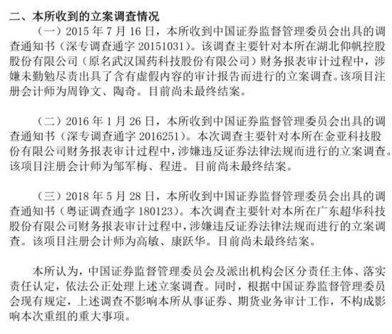 2、作为财政部许可的特殊普通合伙制会计师事务所,本所负责本次重组审计的签字注册会计师李萍、张雯与后附证监会行政处罚、立案调查决定无关。
