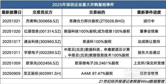 此外,Wind数据显示,今年以来深圳并购市场持续升温。根据最新披露日,今年以来,按照交易竞买方看,深圳共计发生414件并购事件,其中已完成208件,涉及重大并购重组事件的有11件。