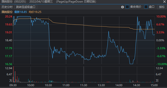 2022年4月13日,国统股份走出准“天地天”,当天收红盘,但后续开启连跌。