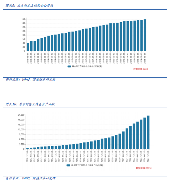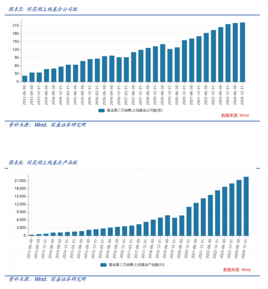 公司通过搭建互联网智能理财服务平台,建立全方位的财富管理产品与服务供给体系,提供股票、基金、个人养老金、期货、保险等多元化理财场景,打造多元化、个性化、品种多、更迭快的智能理财服务平台,满足不同投资者对综合性财富管理一站式需求。伴随ETF扩张驱动公募基金市场扩容,将有利于进一步打开公司互联网智能理财业务空间。截至2024年12月31日,公司“爱基金”平台接入基金公司及证券公司222家,代销基金产品及资管产品22,605支。
