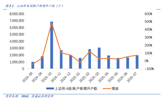 资本市场高峰期来临,开户数2025年7月同比+70.5%,增速较前面三个月出现显著增长。