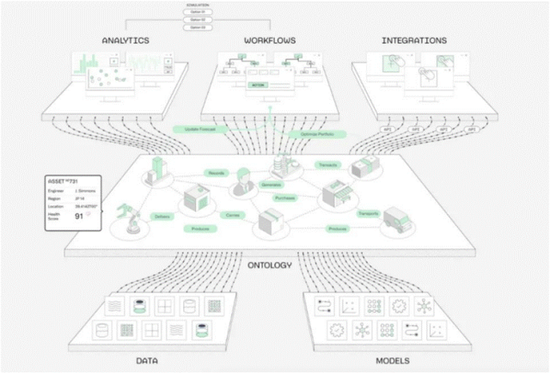 Foundry是Palantir为大型企业客户量身打造的产品,虽然它的技术与Gotham相似,但应用领域主要是商业场景。根据36氪报道,Foundry通过整合企业的大量数据,运用算法发现异常现象,如财务欺诈、供应链效率低下等等。Foundry通过对企业分散的数据进行结构化处理,并应用数据本体论(Ontology),有效解决了数据孤岛问题,使人工智能能够深度应用于企业的工作流程。据Palantir官网介绍,Foundry已被广泛应用于多个行业,包括航空航天、石油和医疗等。例如,空中客车(Airbus)使用Foundry优化了航空航天制造流程,实现了25倍的投资回报率;英国石油公司(BP)利用Foundry优化了石油和天然气的运营流程,节省了10亿美元的成本;英国国家医疗服务体系(NHS)也曾尝试使用Foundry进行数据管理。