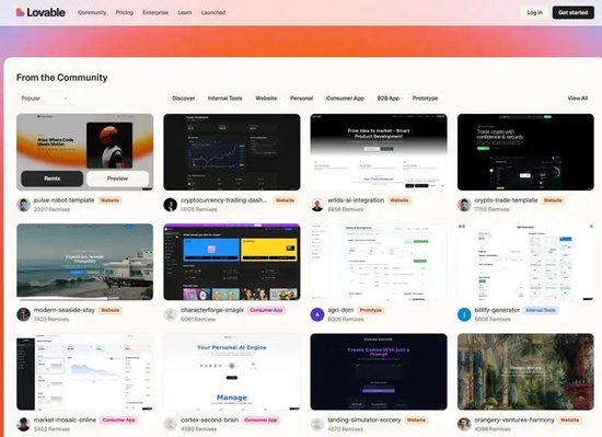 图表6:Lovable平台上的大量AI创作项目 |
