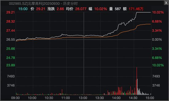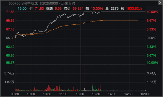 市场热点方面,国防军工股今日全线走强,航空装备方向领涨,板块指数放量大涨逾4%。北摩高科在临近收盘最后不到半小时涨停,中航沈飞亦在午后强势封板,华秦科技、航天彩虹、洪都航空等涨幅居前。