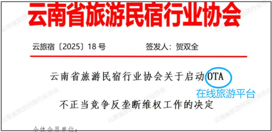 就在前面一个来月,云南旅游民宿行业协会刚公开宣布,因接到多起会员单位投诉,全面启动对携程等个别在线旅游平台(OTA)的反垄断行动,公开征集“二选一”、单方面涨佣金、屏蔽流量等不正当竞争行为的证据。