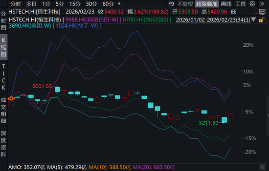 截至2月20日收盘,阿里巴巴-W2月以来累计下跌13%,腾讯控股、美团-W和快手-W更是分别收跌了14.62%、16.92%和17%,均明显跑输指数。