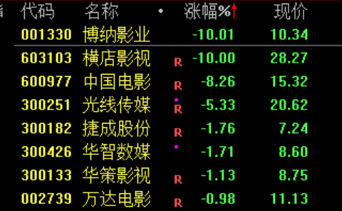 下跌方面,影视股继续调整,博纳影业、横店影视连续两日跌停。