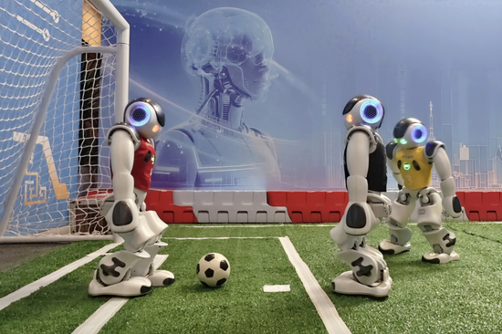 光谷机器人踢足球( 陈少哲|摄)