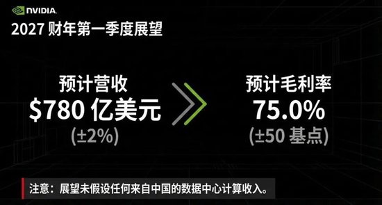 更令投资者鼓舞的是,英伟达的2027财年第一财季(一季度)指引也强于预期。营收料再创新高,指引区间中值较分析师预期中值高7.1%,甚至比买方的乐观预期高4%,同比增速较四季度加快至近77%。英伟达指出,该指引不含中国市场的数据中心计算收入。