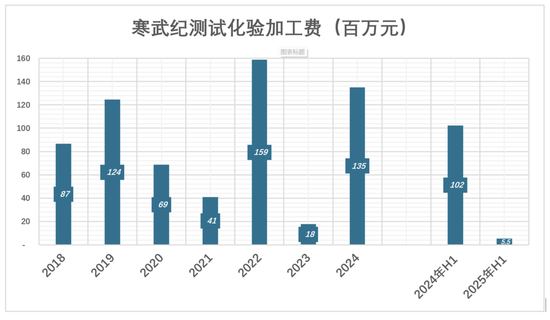 2024年,寒武纪“测试试验加工费”为1.35亿,可以覆盖2.8亿流片成本的40%。估计各级政府、产业基金提供了极大帮助。剩余部分可能被计入“存货成本”。