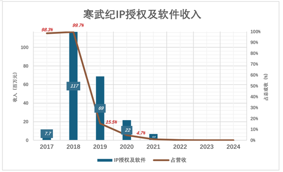 2021年,寒武纪将“IP授权”与“基础系统软件”合并为“IP授权与软件”,并对2020年数据进行回溯: