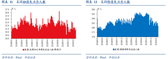 初请失业金人数符合预期,边际小幅回升,但处于低位。3月21日当周,美国初请失业金人数21万,预期21万,前值20.5万。