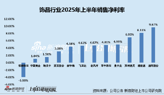 截至2025年8月31日,饰品上市公司已完成2025年上半年财报的披露,对此我们挑选了12家具有代表性的上市公司进行业绩比对分析。在各项财务指标中,销售毛利率、销售净利率作为两项较为核心的盈利能力考核指标,倍受市场投资者关注。