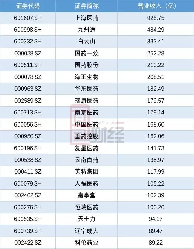 在A股上市的所有生物医药企业中,上海医药在2019年上半年实现的营收排在全行业第一,且大幅领先于后面几位。