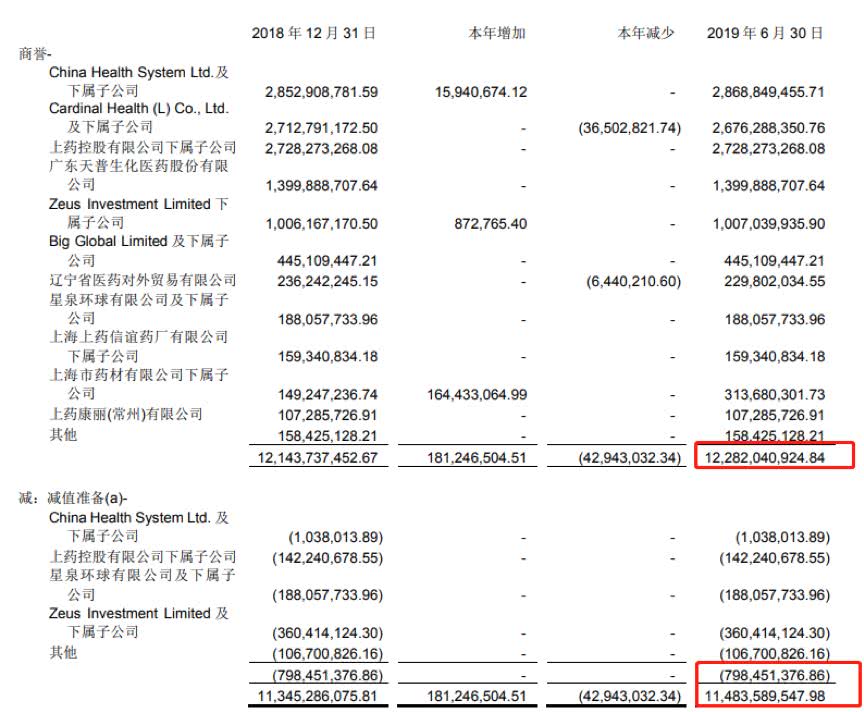 会计准则规定,商誉需要每年进行减值测试,如测试结果表明包含分摊的商誉的资产组或资产组组合的可收回金额低于其账面价值的,确认商誉减值损失。公开信息显示,上海医药已累计计提商誉减值准备7.98亿。其中,2018年对Zeus Investment Limited及下属子公司的减值金额就达到了3.6亿。