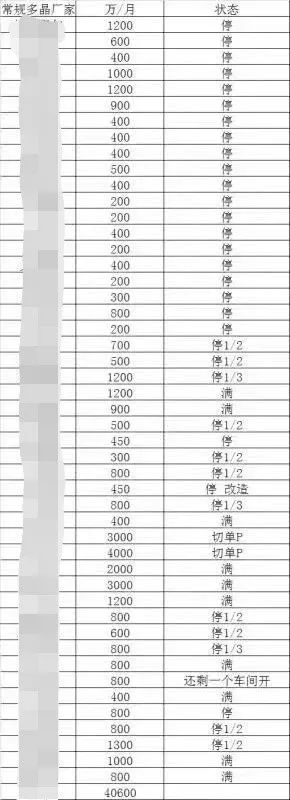 注:上图为业内人士统计的多晶厂家停工率,未经进一步核实,仅供参考
