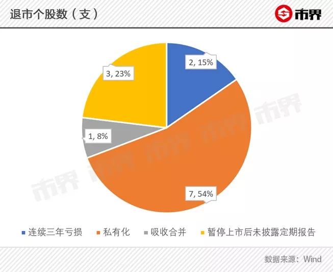 2019不仅是退市大年,更是A股退市常态化元年。?若将时间拉长,2006年A股有13支股票退市,是退市个股最多的一年。但从退市原因来看,2019年的情况更能说明退市机制走向完善。?A股退市原因大致可分为两大类:主动退市和强制退市。?所谓主动退市,是上市公司基于实现发展战略、维护合理估值等原因,主动申请退市。?2006年,中石油筹备整体上市,于是将旗下已经上市的7只个股,齐鲁石化、扬子石化、中原油气、石油大明、吉林化工、辽河油田和锦州石化,全部私有化退市。?中石油大手笔私有化直接造成2006年退市个股数猛增至13支,成为迄今为止退市个股最多的一年。换个角度看,2006年的退市高峰主要是由中石油一家巨无霸公司造成,实际影响并不很大。