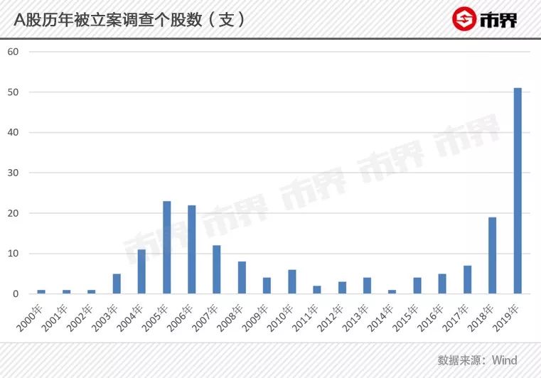 乐视网被贾会计掏空,不仅连续亏损,还自2017年起便资不抵债;*ST保千被曝欺诈发行,原实控人庄敏掏空上市公司、留下巨额债务后失联,公司同样从2017年起连续亏损,资不抵债。?2019年5月,两家公司分别因“最近一个审计年度净资产为负”?和“最近2年连续亏损,且被会计师事务所出具无法表示意见的审计报告”被交易所实施暂停上市。?上述“退市制度”中明确规定,上市公司因净利润、净资产、营业收入、审计意见类型被暂停上市后,最近一个会计年度上述指标仍有不达标的,其股票将被终止交易,即强制退市。也就是说,*ST保千和乐视网已经在劫难逃。?截至目前,A股有9支个股被暂停上市,除上述2家外,仅有*ST德奥预告2019年盈利,暂时回到安全区,其余6家仍然凶多吉少。?除暂停上市公司外,一些上市公司也并不安全。?最新交易日收盘价显示,ST锐电、*ST欧浦(维权)、*ST飞马(维权)等公司股价已经接近1元,若股价继续走低,很可能将触发“面值退市”机制。?另一类高危退市公司是已被立案调查的公司。Wind数据显示,2019年沪深两市被监管立案调查的公司高达51家,为2000年以来最高峰。