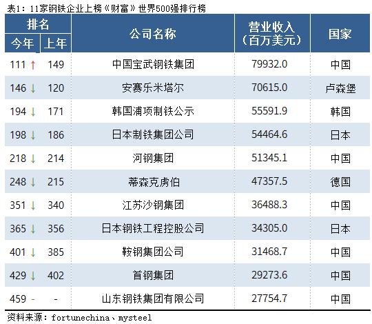 原标题:11家钢企上榜财富世界500强 来源:我的钢铁网