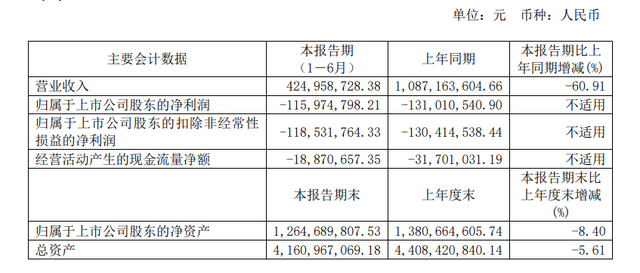 数据显示,上半年退市银鸽营业收入4.25亿元,同比下降60.91%;实现归属于上市公司股东的净利润-1.16亿元,经营业绩连续亏损。
