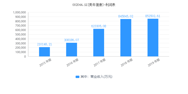 但是2019年以来,美年健康的业绩高速增长出现拐点。今年4月14日,美年健康发布2019年业绩年报显示,2019年实现营业收入85.27亿元,同比增长0.81%;归属于上市公司股东的净利润为-8.66亿元,同比下降205.58%。
