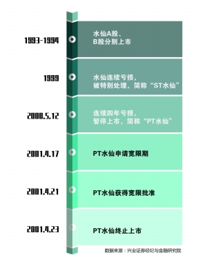 最终,回天乏术的PT水仙于2001年4月23日告别资本市场。对中国资本市场而言,这是一件载入证券发展史的大事,它标志着退市制度的正式实施,形成了从“进入”到“退出”的完整机制。此后,退市名册上又陆续增加了一连串公司的名字。