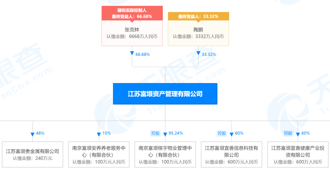 该公司关联机构是富垠财富,其还投资了江苏富垠贵金属有限公司、南京富垠安养养老服务中心(有限合伙)、南京富垠核宇物业管理中心(有限合伙)、江苏富垠宜善信息科技有限公司等。