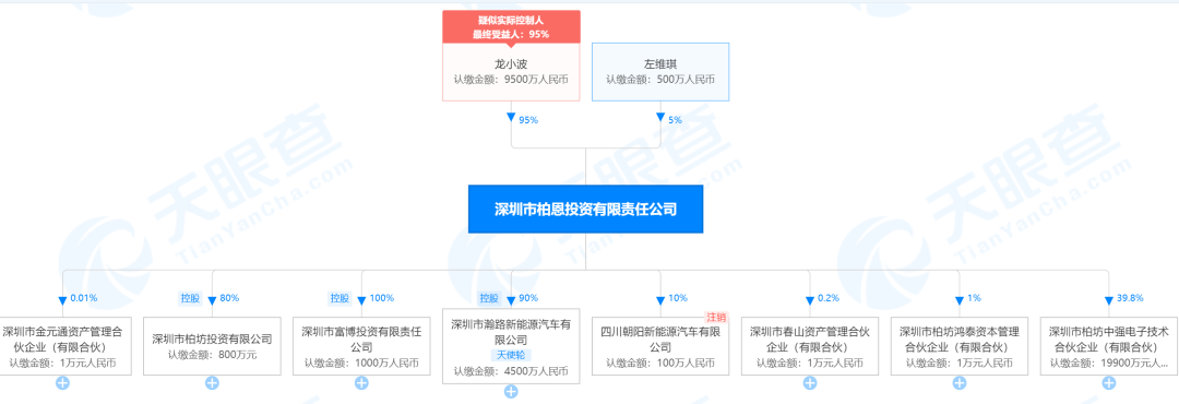 此次被注销的私募还包括“深圳市柏恩投资有限责任公司”,天眼查信息显示,该公司成立于2004年5月27日,注册资本1个亿,其股东为龙小波、左维琪,分别持股95%、5%;龙小波为公司的法定代表人、实控人。