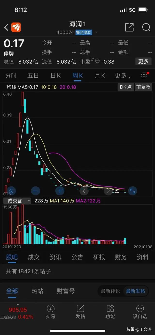 乐视网0.19元卖出的投资者今天内心肯定是崩溃的,为了不重蹈覆辙乐视网割肉的悲剧重演,海润光伏投资者此刻此价选择加仓才是明智的决策。复牌后第一天虽然卖一有130万手卖盘,但是当天成交了16万手,选择买入的勇士具备了破釜沉舟的决心,天佑勇者。挂在卖一的懦夫一定是因为恐惧才选择卖出的。