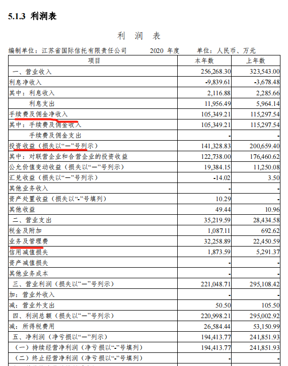 图示:江苏信托2020年半年报;来源:江苏国信公告事实上,成也投资,败也投资。
