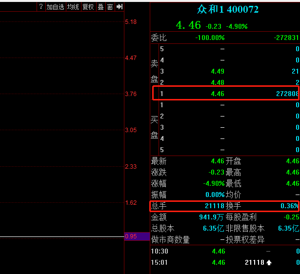 对于众和1连续跌停,有股民表示,“以前是买不到,现在是卖不出去,不是涨停就是跌停”、“想买的,随便买。想卖的,没机会了。很难吸引到新韭菜进来”。