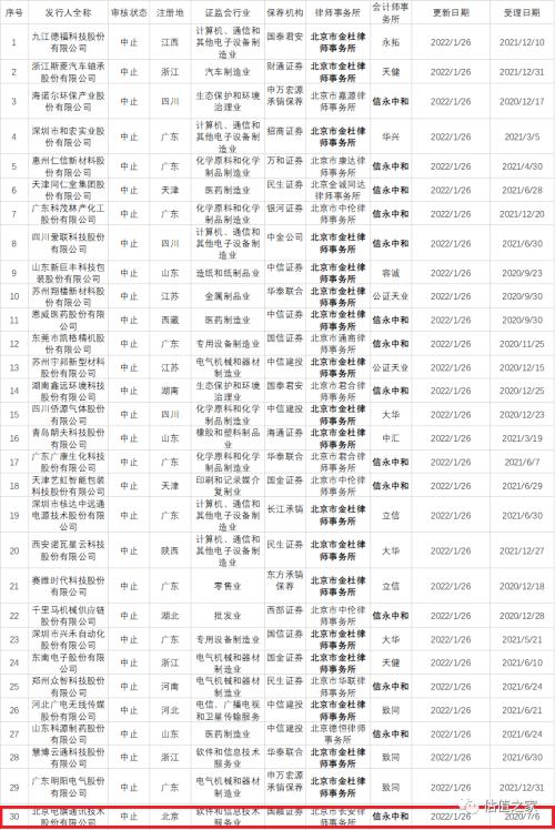 第三次是2022年1月26日,公司审计机构信永中和被证监会立案调查,深交所根据《创业板上市审核规则》第六十四条的相关规定,中止公司发行上市审核。