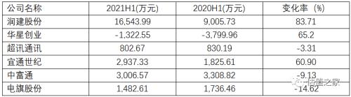 我们再来看竞争对手的情况,如下图是各公司2021年上归属于母公司的净利润同比2020年上半年的数据: