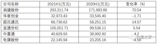 我们再来看竞争对手的情况,如下图是各公司2021年上半年收入同比2020年上半年的数据: