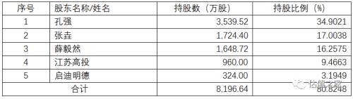 如上表所示,持有公司3%以上股份的主要股东有孔强、张?、薛毅然、江苏高投和启迪明德,分别持有公司34.90%,17.00%,16.26%、9.47%和3.19%的股份。公司控股股东、实际控制人孔强仅持有公司34.90%股份,如果张?和薛毅然联手,则股权比率为33.26%,和孔强持股仅相差1.64个百分点,基本上可以做到分庭抗礼;如果张?、薛毅然和启迪明德联手,则股权比率为36.45%,则超过孔强的34.90%的股权比率1.55个百分点,亦可以成为控股股东和实际控制人;如张?、薛毅然联手江苏高投,则持股比率为42.73%,已经超过孔强持股比率7.83个百分点,则成为实际控制人和控股股东;更甚,张?、薛毅然、江苏高投联手启迪明德,则持股比率为45.92%,超过孔强持股比率11.02个百分点,亦是实际控制人和控股股东。而且36.45%的比率、42.73%的比率以及45.92%的比率都超过三分之一,根据经济法和公司章程,很多情况下公司决策都需要三分之二以上股东表决通过方可执行,如果上述股东组合成立,则孔强就很难通过股东会决议,也就很难成为实际意义上的控股股东和实际控制人。