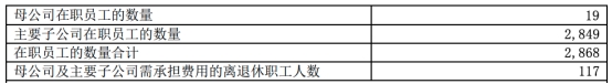 截止2021年12月31日,华创阳安在职员工2,868人,其中母公司在职员工的数量19人,主要子公司在职员工的数量2,849人。