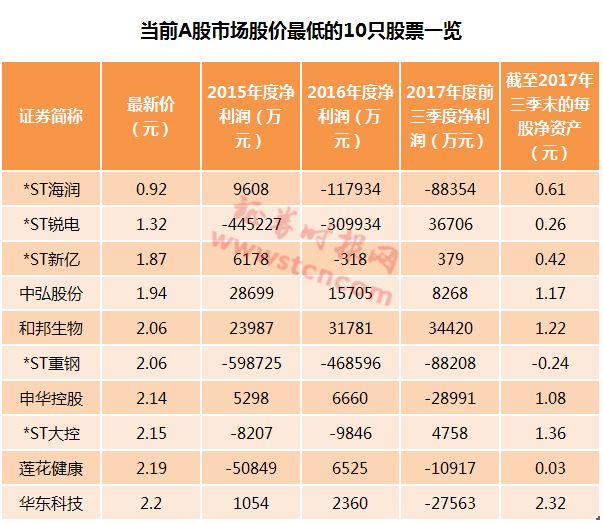 观察这些股价比较低的股票,多数经营业绩不佳,连续亏损又花式扭亏的不在少数,很多每股净资产已低于1元。