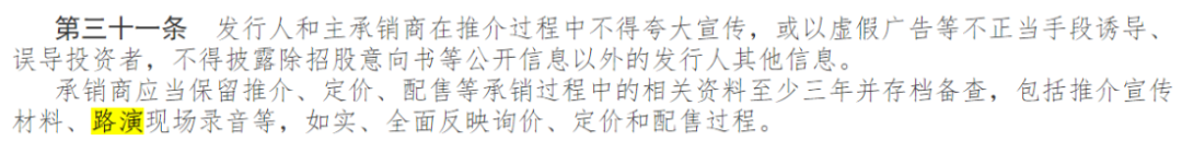 信披合规在当前仍将影响企业IPO,2021年证监会发布的《证券发行与承销管理办法》要求路演现场录音应保存至少3年并存档备查,其中第36条指出“中国证监会对证券发行承销过程实施事中事后监管,发现涉嫌违法违规或者存在异常情形的,可责令发行人和承销商暂停或中止发行,对相关事项进行调查处理。”