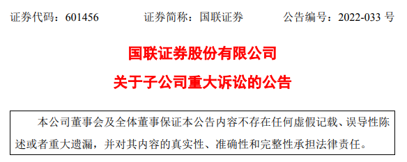 上市公司所处的当事人地位:国联证券股份有限公司(以下简称“公司”)全资子公司华英证券有限责任公司(以下简称“华英证券”)为15 名被告之一