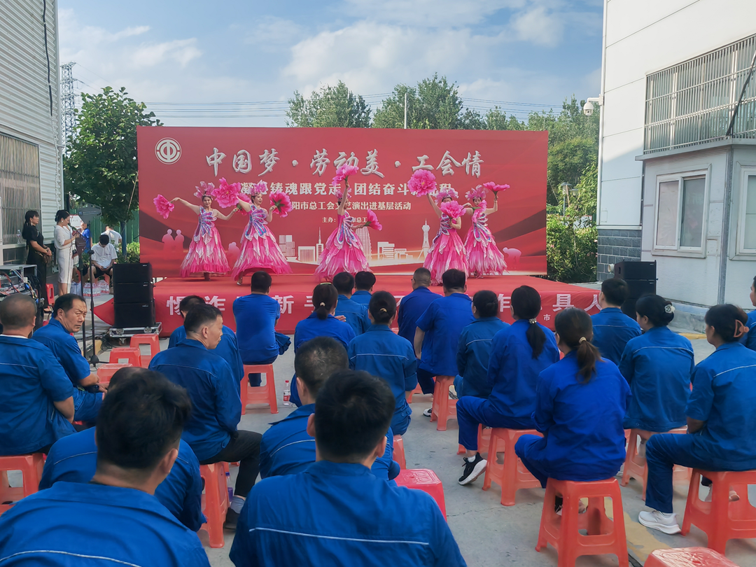 为进一步厚植爱党、爱国、爱社会主义的情感,大力营造团结奋进、自信自强的浓厚氛围。7月31日,由荥阳市总工会主办的“中国梦?劳动美?工会情”文艺演出进基层活动走进郑州华晶金刚石股份有限公司,为华晶职工献上了一场精彩纷呈的文艺盛宴。