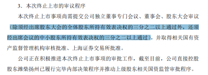 与此同时,公司自治原则贯穿始终,股东可以通过合理途径表达自己意见。公告显示,*ST亚星主动退市需经股东会决议通过,要求股东大会三分之二通过,且中小股东三分之二通过,并取得相关国有资产监督管理机构审核批准、上海证券交易所批准。