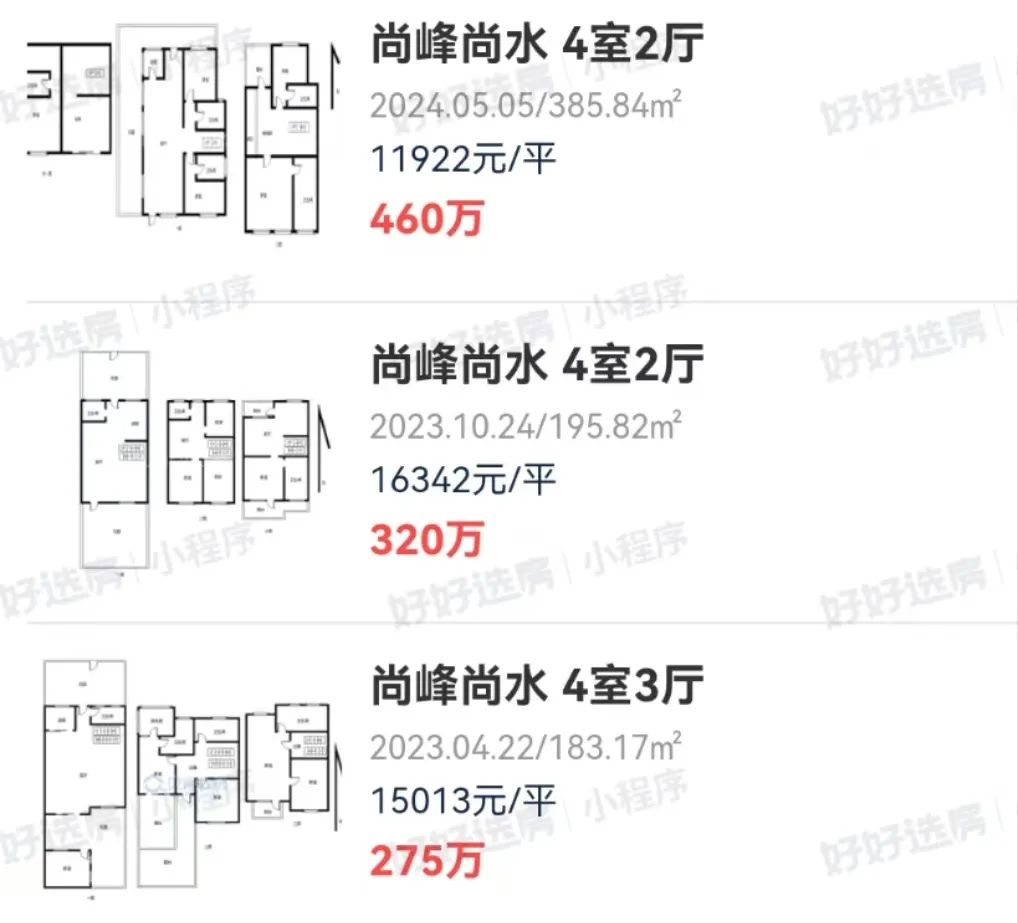 我从二手房网站查看该小区的成交量,最近一次成交是今年5月份,一套面积385?的4室2厅房源,460万成交,单价11922元/?。