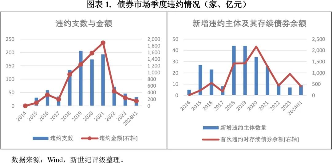 2024年上半年债券市场信用风险总体保持平稳,违约与展期金额较往年同期处于较低水平。上半年共有9家发行人首次违约,3家发行人首次展期。总体来看风险暴露情况较往年有所缓和,2024年下半年,预计债券市场仍将保持出清趋势,风险暴露保持偶发态势,以房地产为主的出险主体风险处置工作将继续推进。