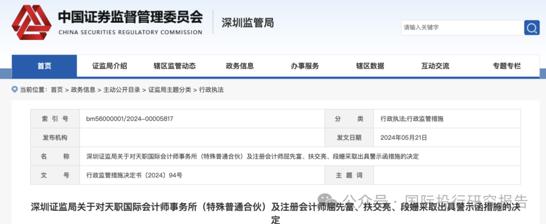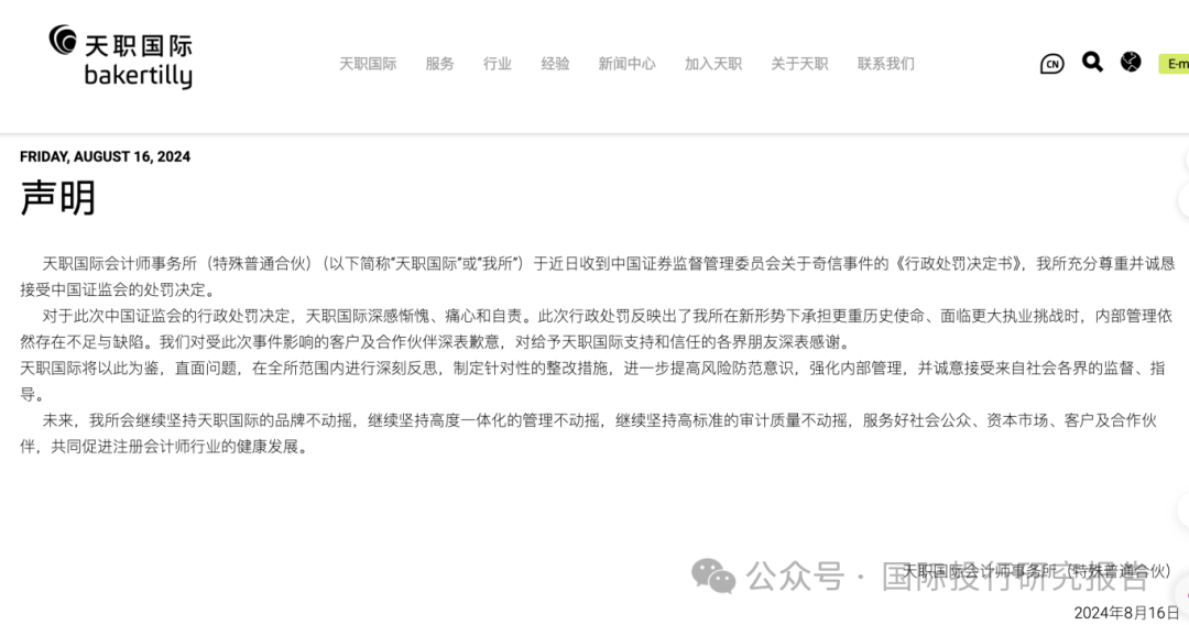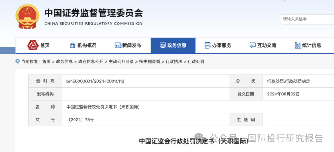 证监会网站显示,中国证监会忍无可忍,对内资八大会计师事务所之一之一的天职国际下达了行政处罚决定书,这是在对大华所处罚之后的有一个重大行动!