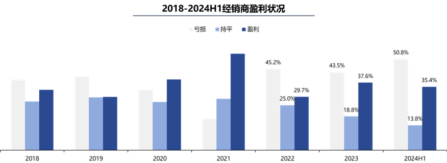 伴随着车市大洗牌,经销商利润空间进一步被压缩,大多数汽车经销商的日子并不好过。据了解,今年上半年仅有35.4%的经销商实现盈利,而亏损经销商比例达50.8%,盈亏平衡的经销商为13.8%,在这样的背景下,“如何求变”或者说“如何顺应时代变化”是当下众多汽车经销商值得思考的问题。