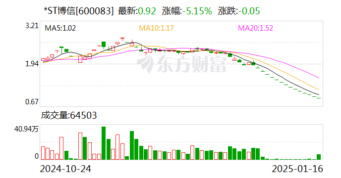 公告显示,2024年12月19日至2025年1月16日,*ST博信股票连续20个交易日每日收盘总市值均低于5亿元。上述情形属于《上海证券交易所股票上市规则(2024年4月修订)》(以下简称《股票上市规则》)第9.2.1条第(五)项规定的股票终止上市情形。根据《股票上市规则》第9.1.10条、第9.2.1条和第9.2.7条的规定,经上交所上市委员会审核,上交所决定终止公司股票上市。