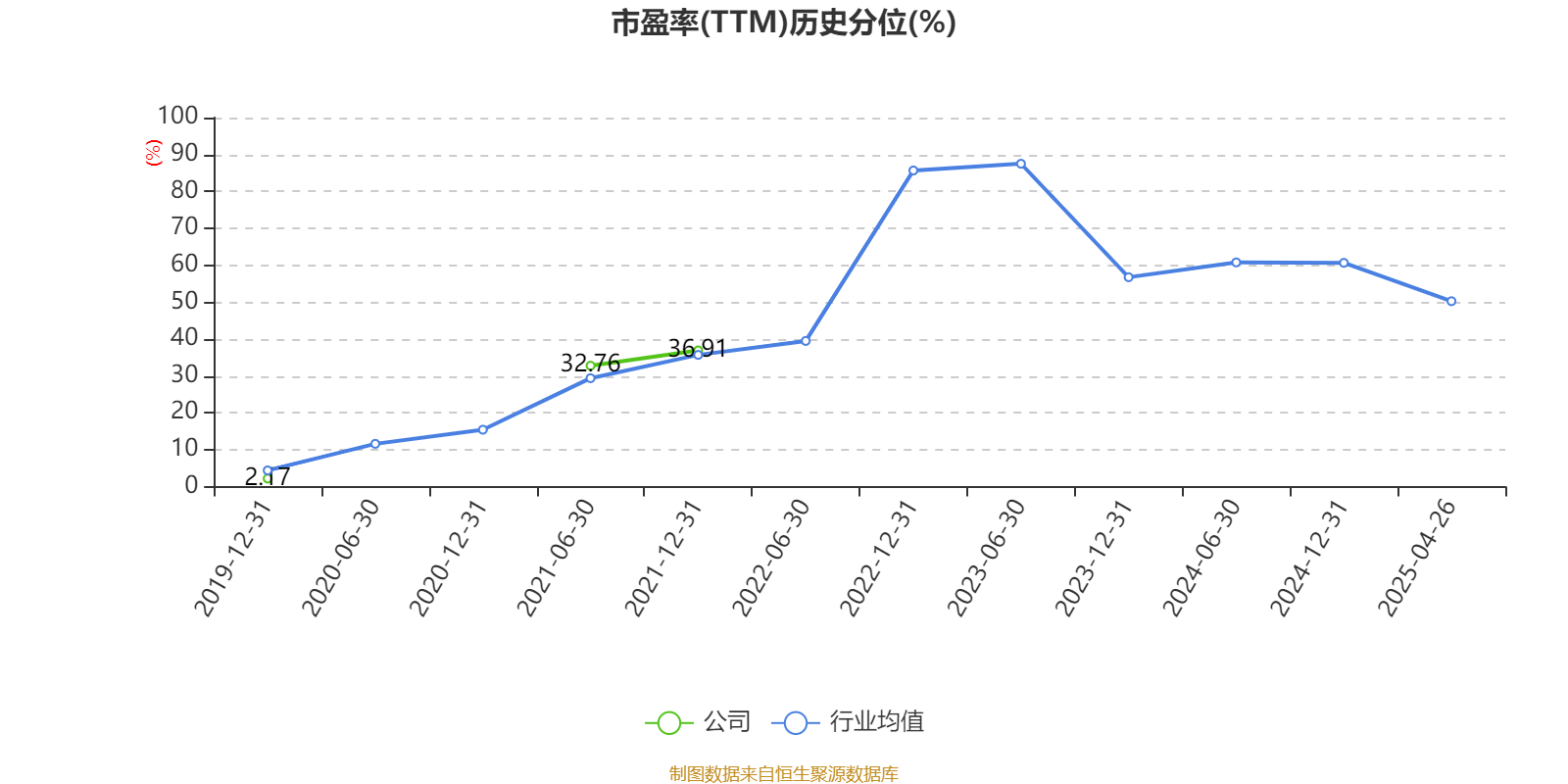 市盈率、市净率为负时,不显示当期分位数,会导致折线图中断。