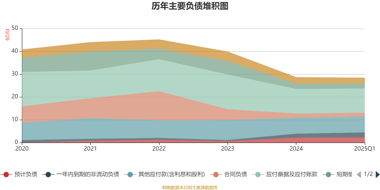 负债重大变化方面,截至2025年一季度末,公司一年内到期的非流动负债较上年末增加25.2%,占公司总资产比重上升5.67个百分点;长期应付款合计较上年末减少80.3%,占公司总资产比重下降4.65个百分点;其他应付款(含利息和股利)较上年末减少0.55%,占公司总资产比重上升2.05个百分点;预计负债较上年末增加4.66%,占公司总资产比重上升1.88个百分点。