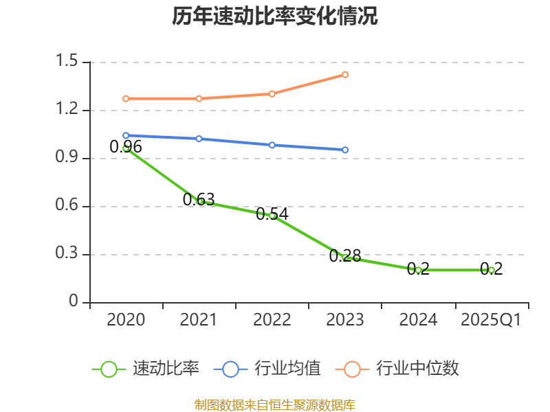 2025年第一季度,公司流动比率为0.2,速动比率为0.2。