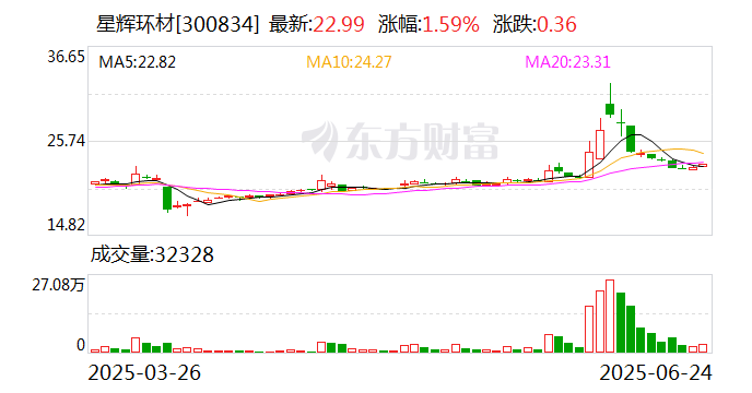 星辉环材(SZ 300834,收盘价:22.99元)发布公告称,2025年6月24日,星辉环材接受华福证券调研,公司董事会秘书黄文胜、证券事务代表谢馥菁参与接待,并回答了投资者提出的问题。